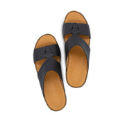 The contrasting tan inner sole enhances the overall aesthetic, balancing the sleek black exterior with a touch of warmth, making these sandals versatile enough to pair with various casual and semi-casual outfits. Ideal for those seeking a blend of elegance and practicality, the "LE MANS" sandals are a timeless addition to any footwear collection.